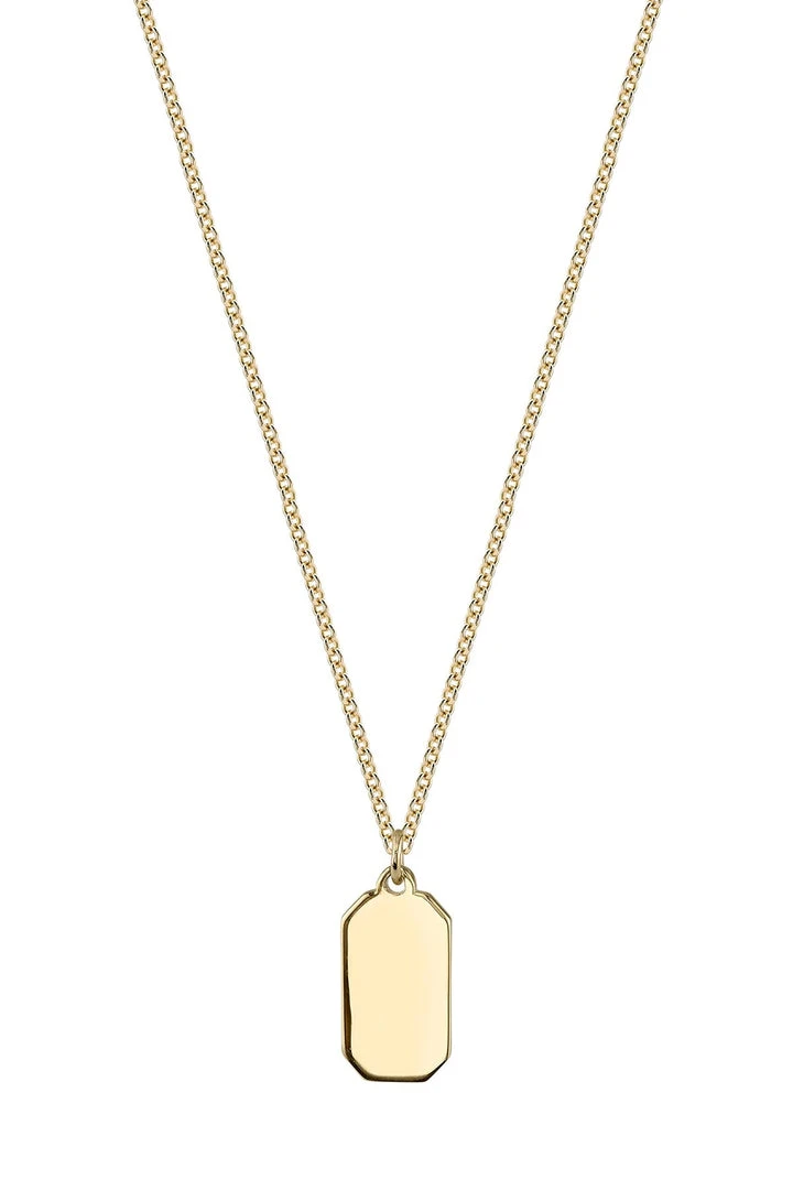 a tiny classic. this takes the traditional dog tag necklace and shrinks it down to a pint-sized treat. crafted from a gold vermeil, this flat charm could easily be engraved (if you fancy) or keep it unadorned and on your neck 24/7. it will pair with everything.