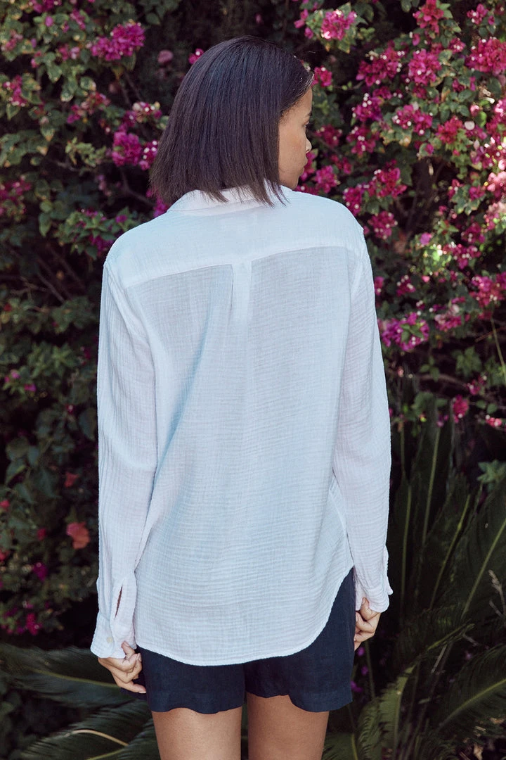 Crafted from our lightweight cotton gauze, this button up has a slightly relaxed silhouette that lends an added ease to the styling. The scooped hemline looks equally chic tucked or left loose.