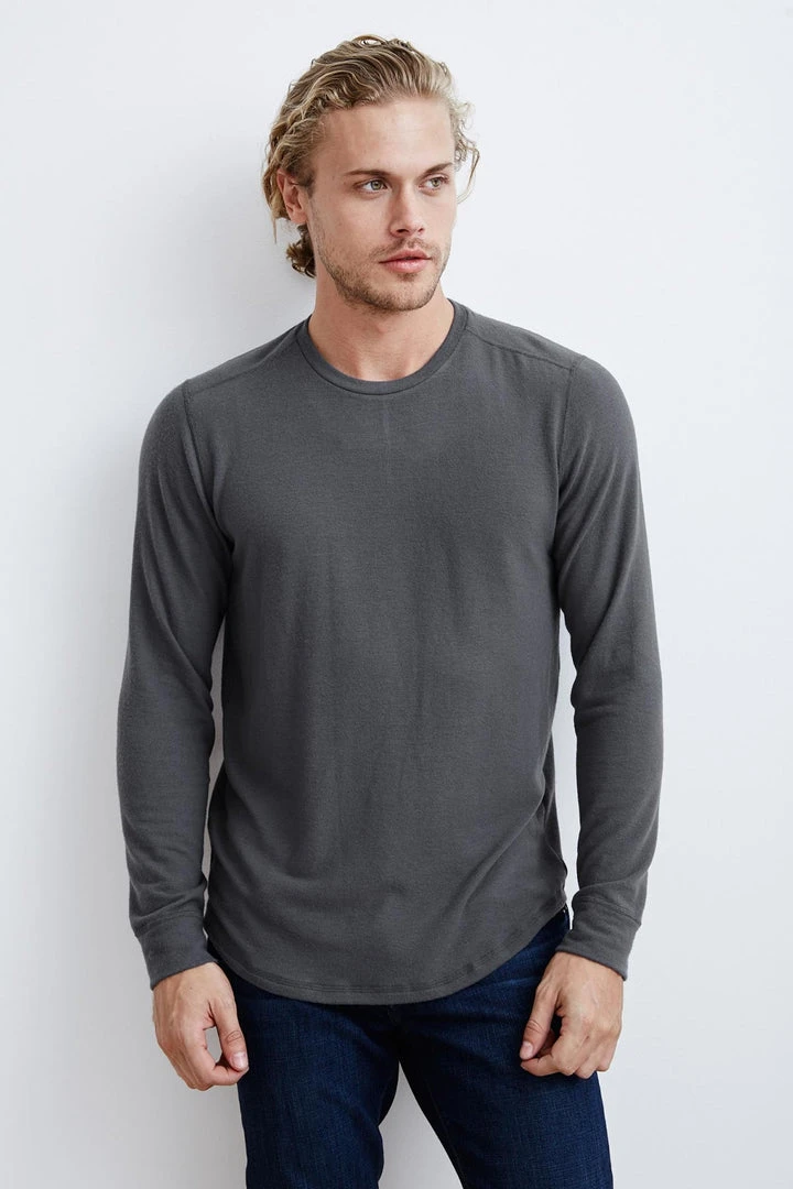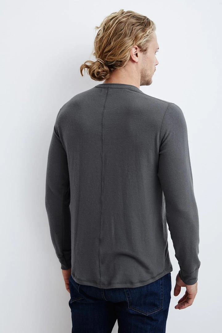 KEEP YOUR OFF-DUTY BASICS LOOKING STYLISH WITH THIS HEATHERED LONG SLEEVE KNIT TOP. THE FABRIC IS SUPER SOFT AGAINST THE SKIN AND THE BEST LAYERING WEIGHT. CHECK OUT THE ENGINEERED TUBULAR STITCHING ON THE SEAMS AND THE VISIBLE SEAM DOWN THE BACK.