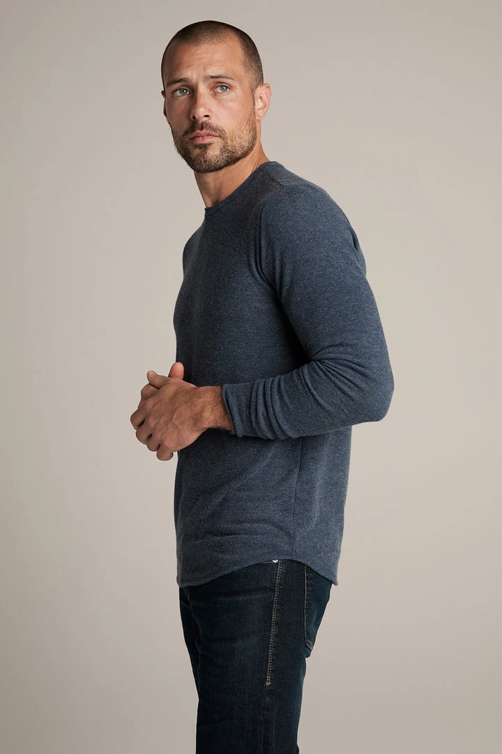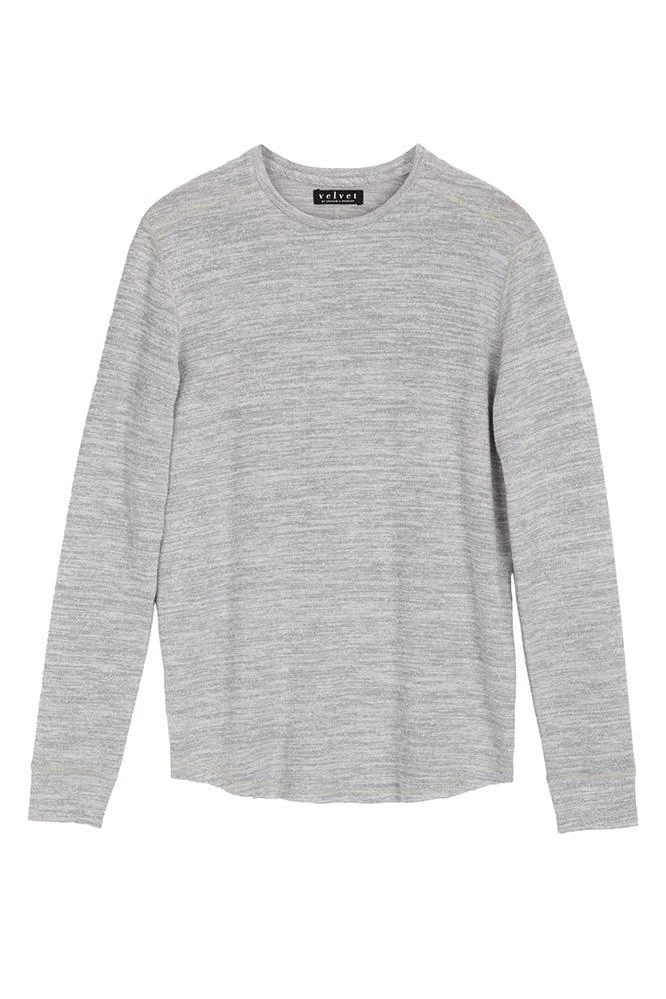 KEEP YOUR OFF-DUTY BASICS LOOKING STYLISH WITH THIS HEATHERED LONG SLEEVE KNIT TOP. THE FABRIC IS SUPER SOFT AGAINST THE SKIN AND THE BEST LAYERING WEIGHT. CHECK OUT THE ENGINEERED TUBULAR STITCHING ON THE SEAMS AND THE VISIBLE SEAM DOWN THE BACK.