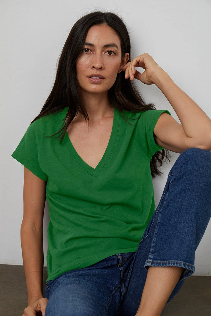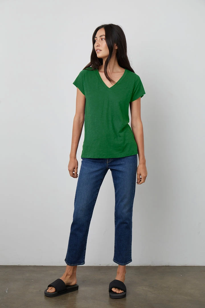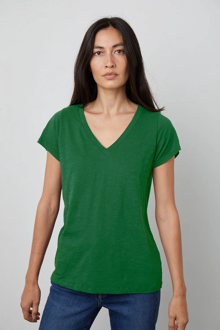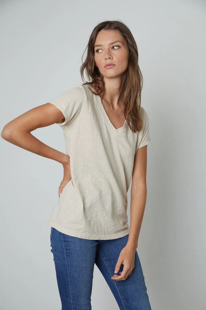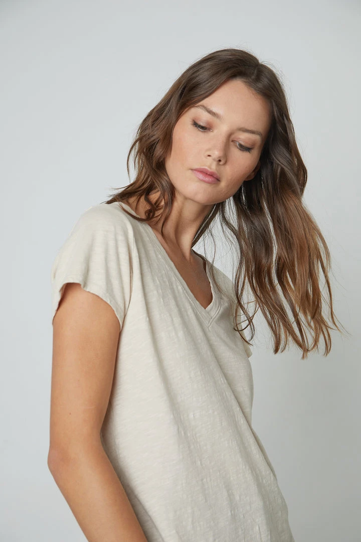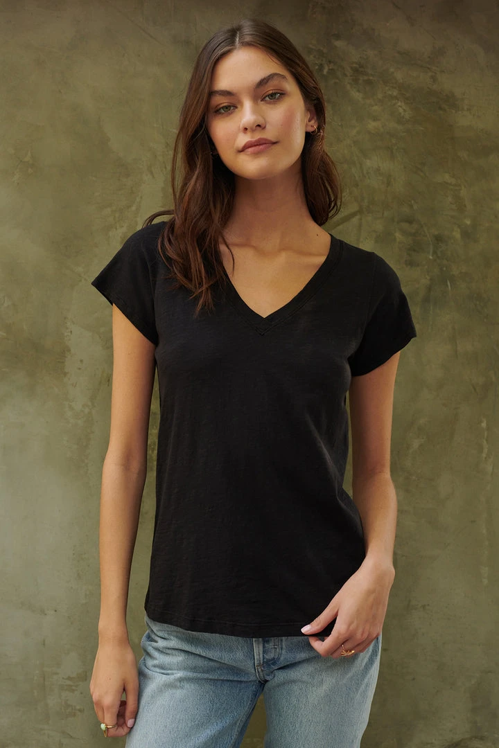 V good in every way. A classic v neck tee in our original cotton slub that has just a hint of texture to it.