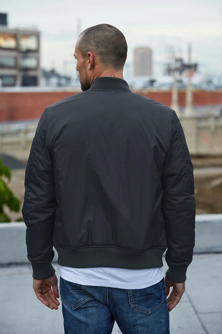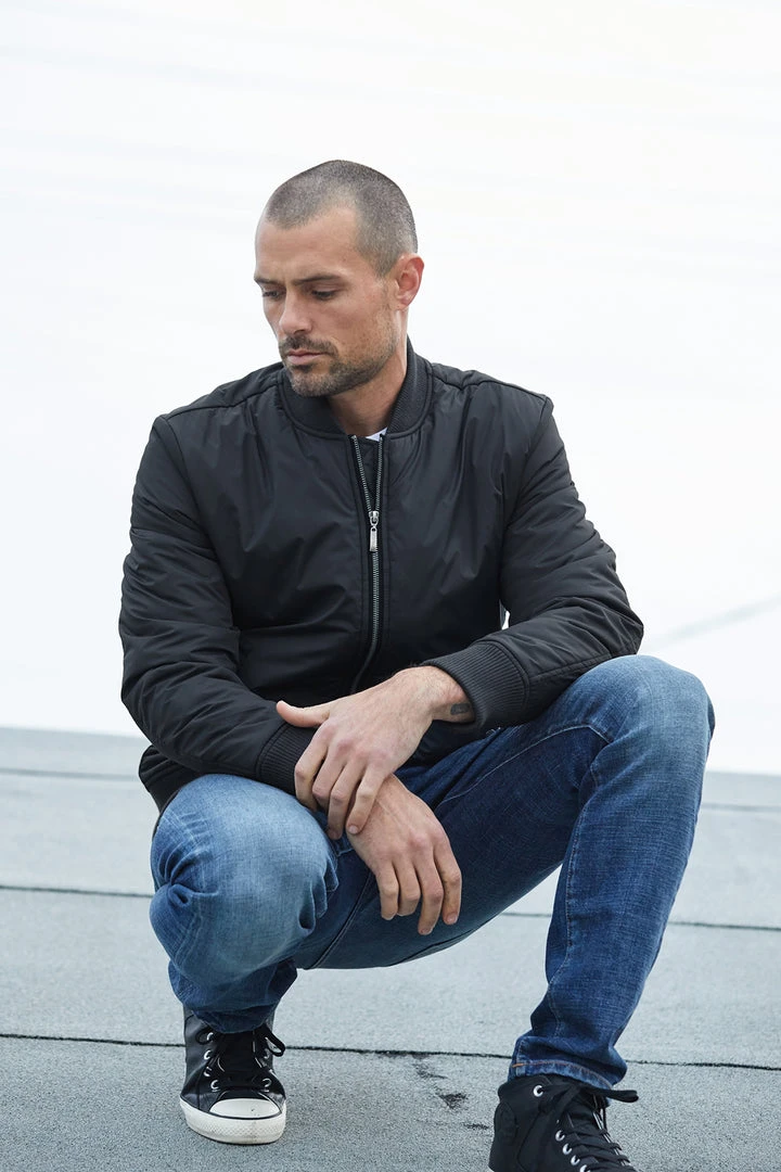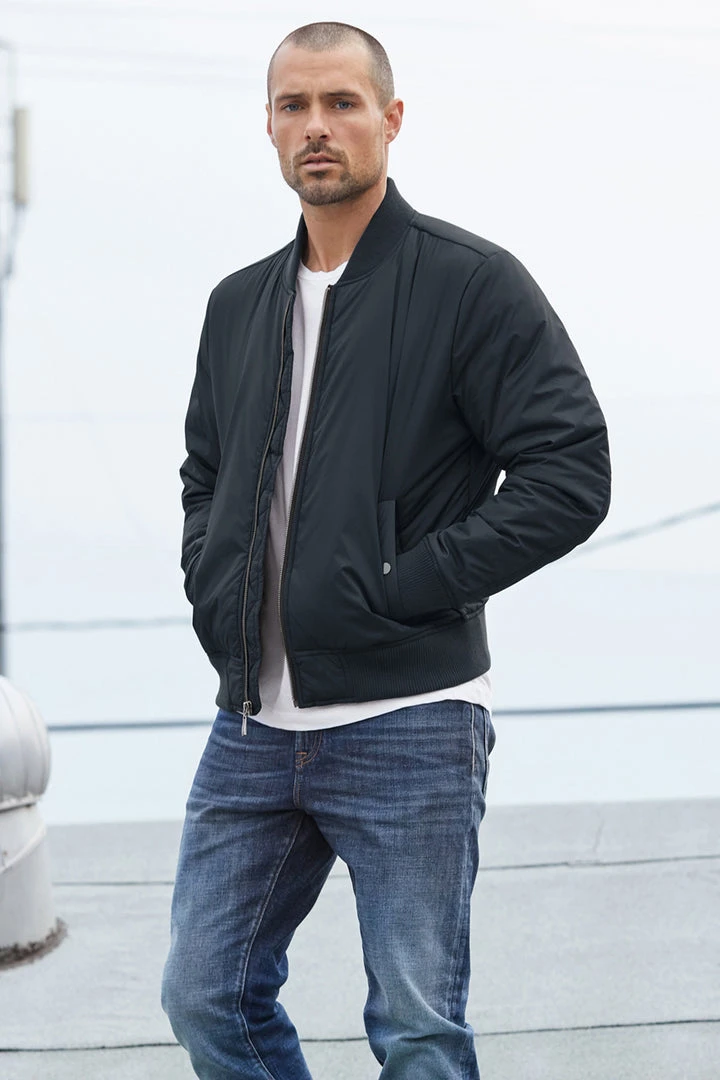 so bomb. this is a classic bomber jacket with contrast trim at the cuff, neck and hem with a zip fastening through the front.