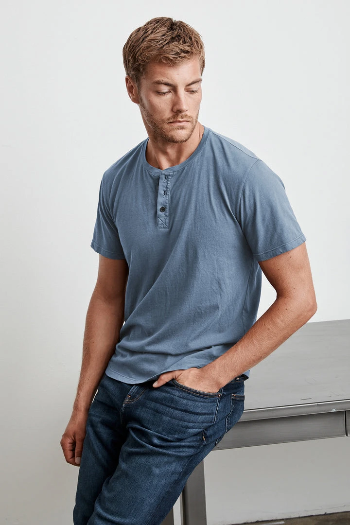a classic 3-button henley tee made from soft lightweight cotton, perfect for layering up or flying solo.