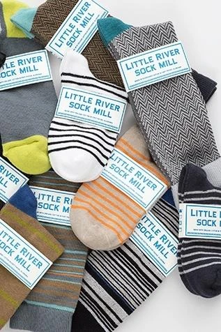 these classic socks are made in a small mill in fort payne, alabama. the designs are inspired by the natural, rustic beauty of the south and each pair is crafted with the utmost care and always honors the land by using the highest quality organic cotton and sustainable practices. these guys make our hearts and our feet feel warm.