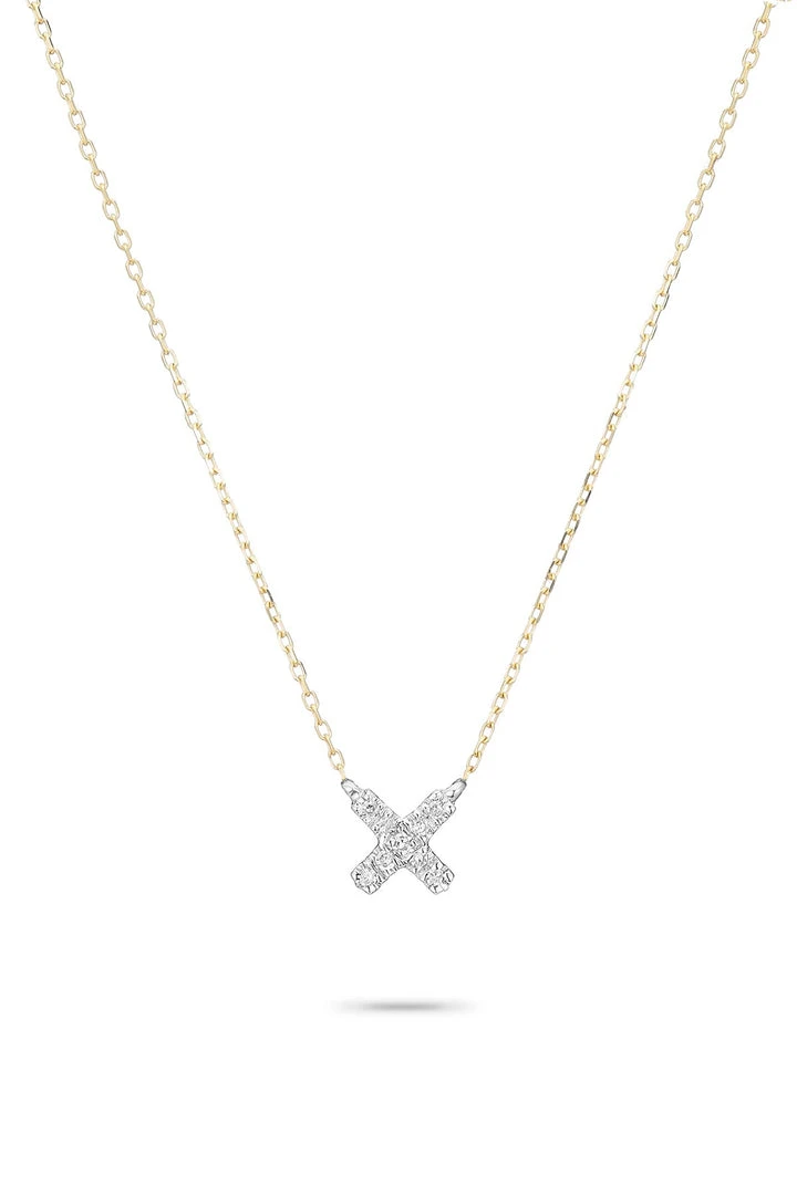 x marks the spot, and that spot will be your décolletage when you slip on this demure neck charmer. crafted from a 14k gold cable chain and with a silver cross in the center that is adorned with pavé diamonds. pair this with a boyfriend button-up shirt and you’ve got classic look that is timeless.