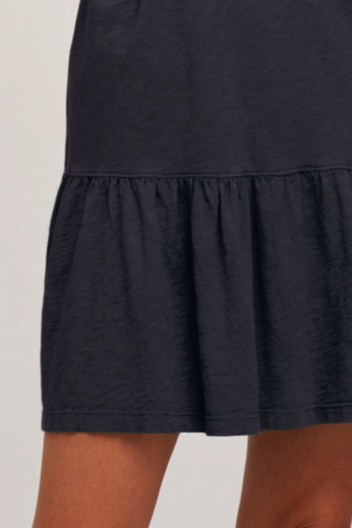 Crafted from our signature cotton slub, this casual frock feels sporty with it’s banded neckline and cuffs. The tiered skirt adds a feminine edge, perfect for the weekend or vacations.